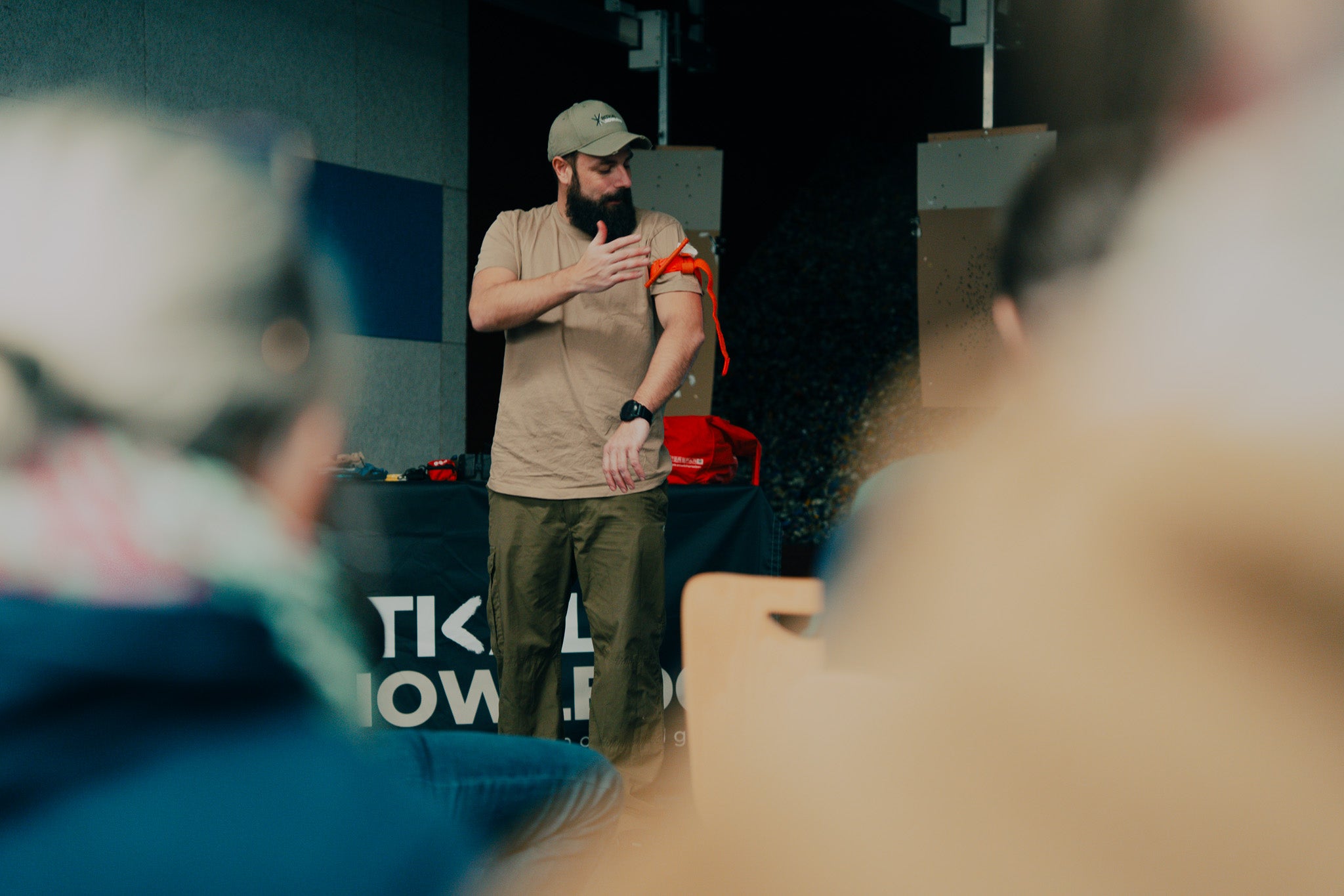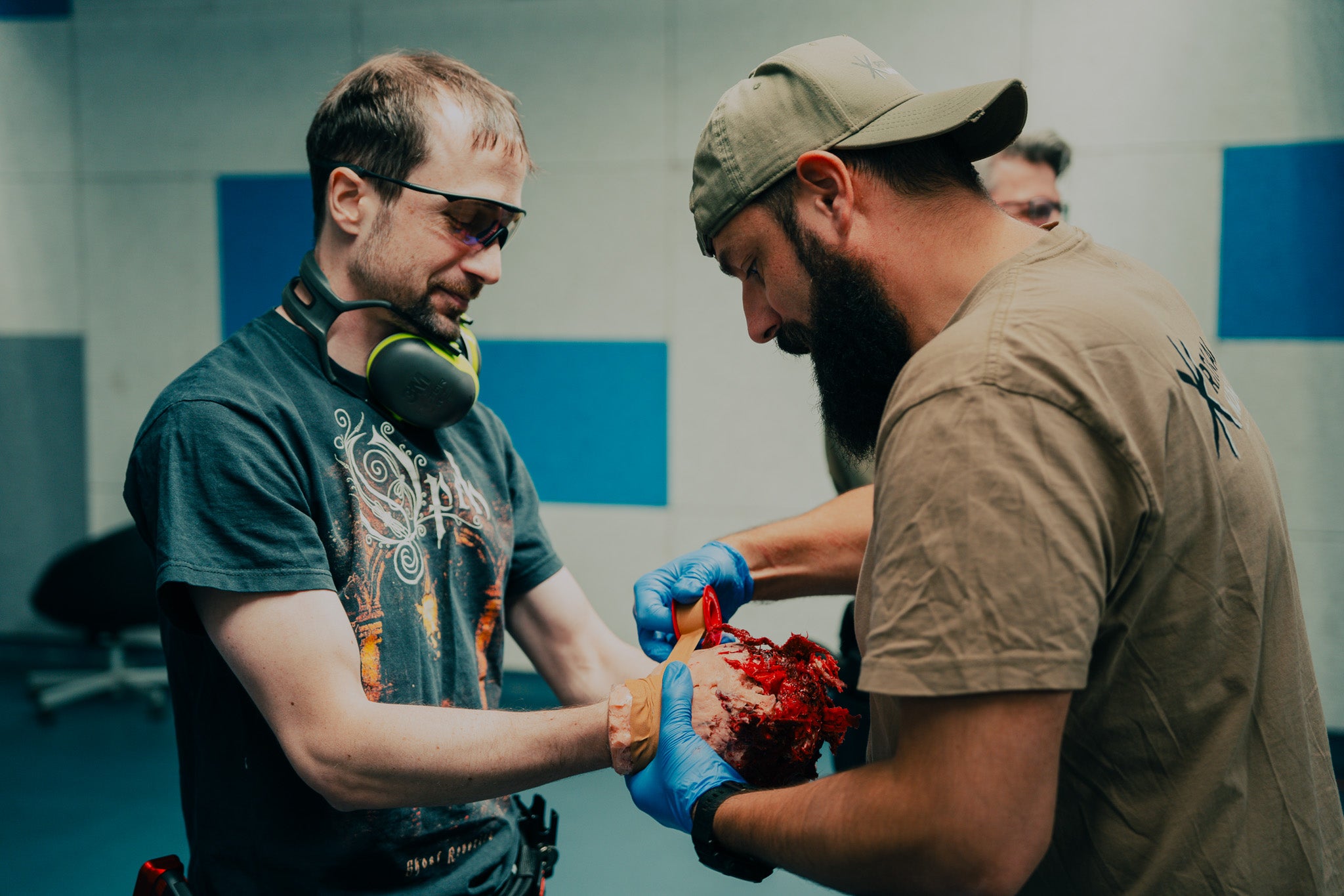 Nach dem Wiederholen des notwendigen theoretischen Basiswissen der Ersten Hilfe liegt der Fokus des Workshops auf das Versorgen von Schuss-, Stich-, Querschläger- und Schnittverletzungen an der Schießstätte.